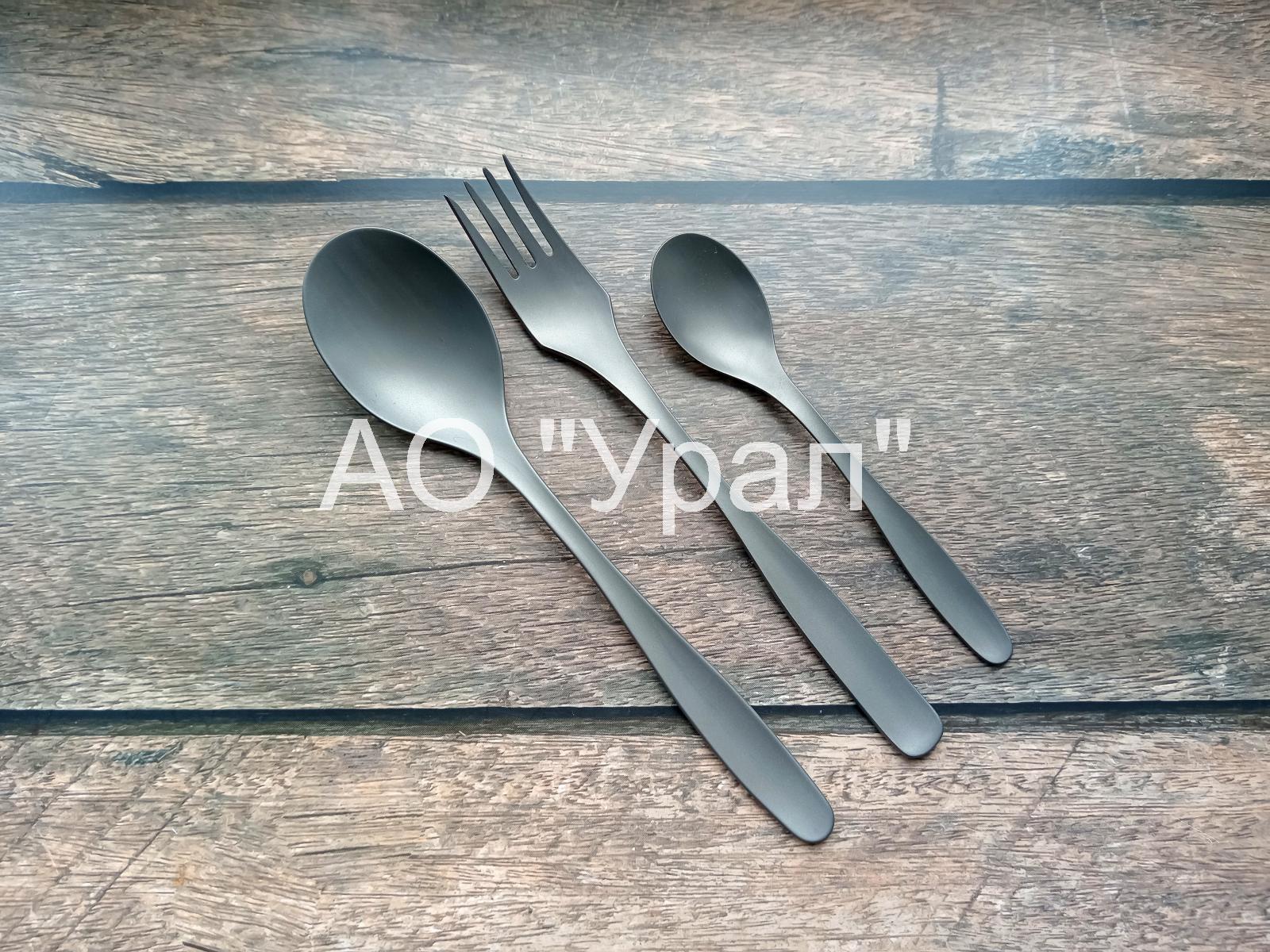 Набор 3х предметный титан Финский Дизайн гидрополированный в термопленке Стоимость указана за 1 набор ложка столовая, вилка столовая, ложка чайная.