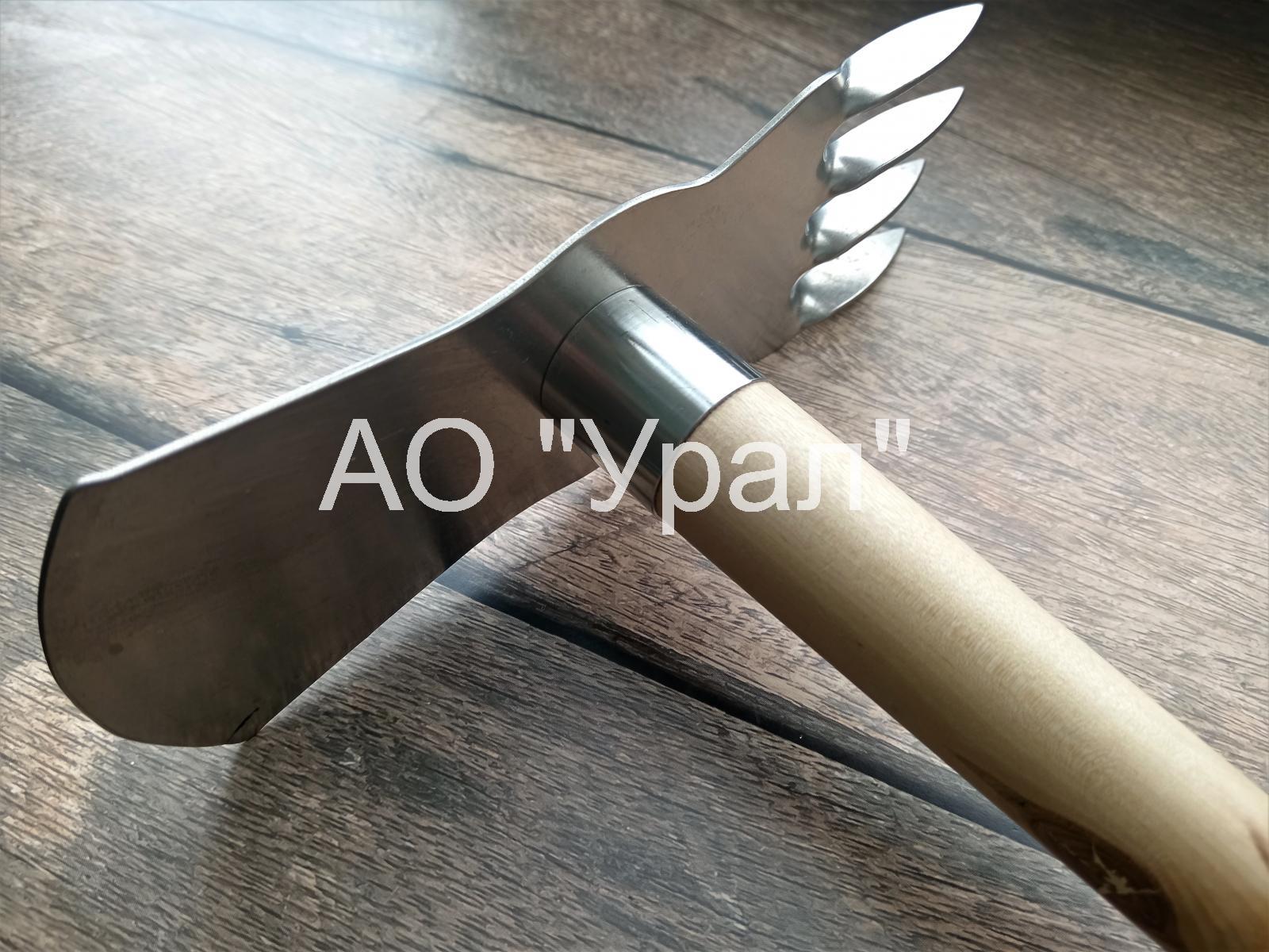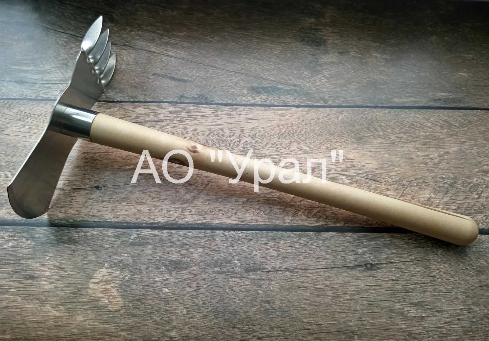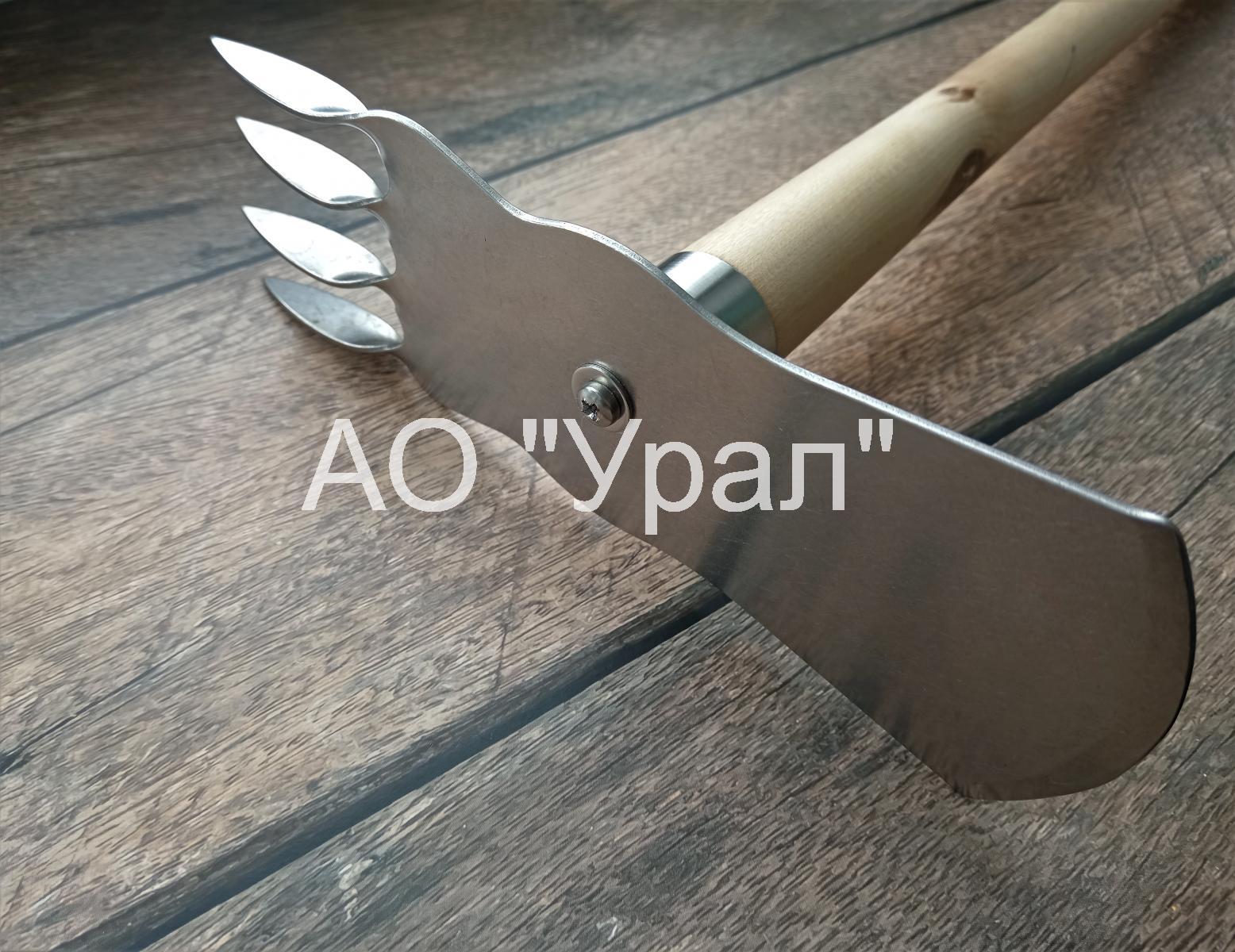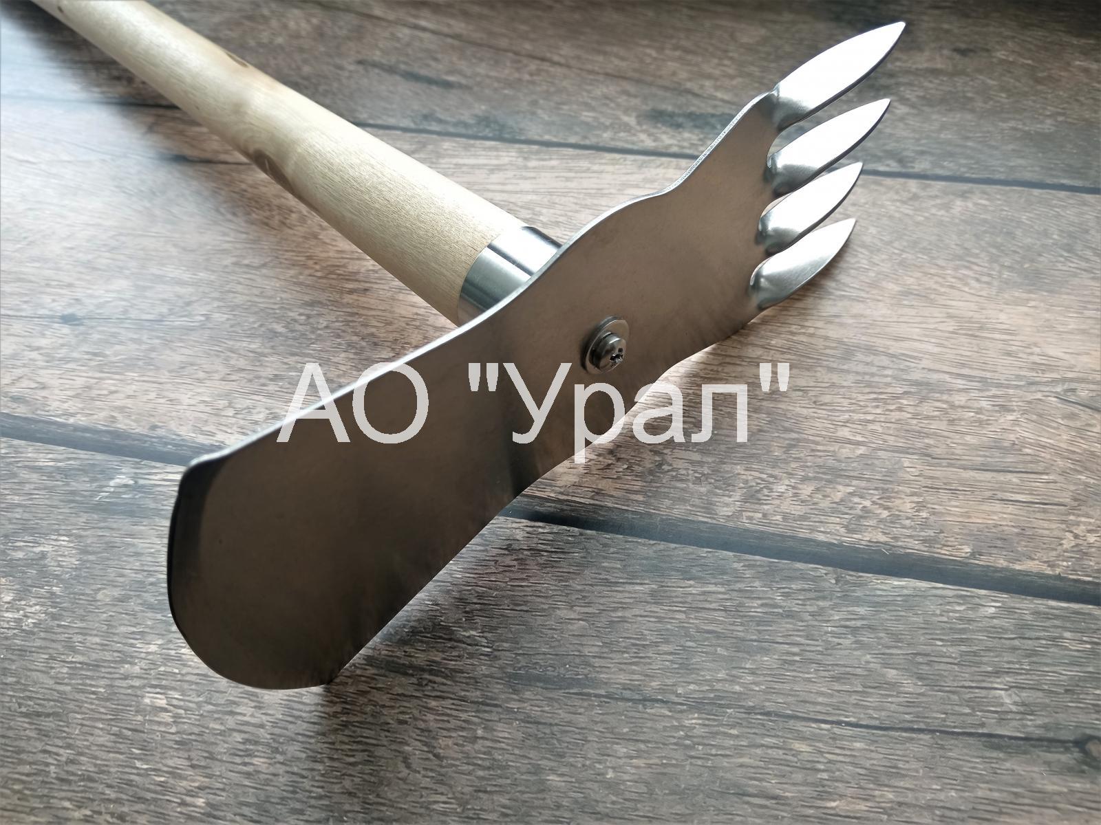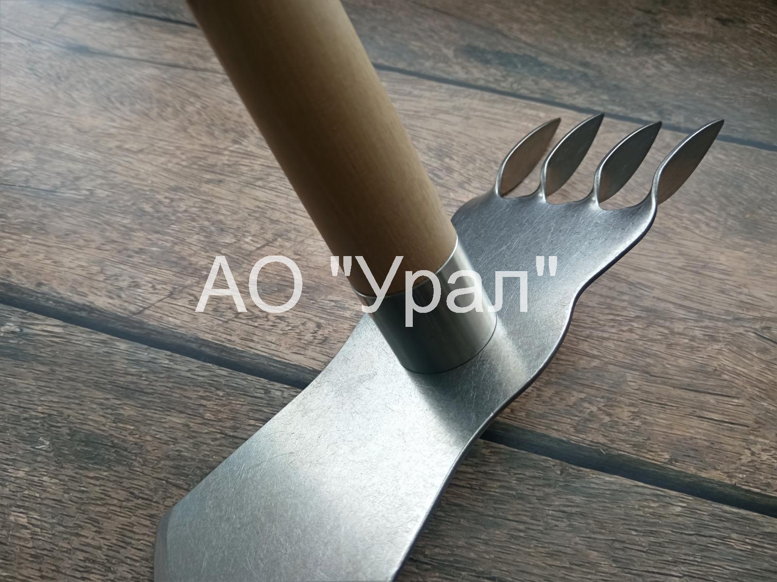 Рыхлитель титановый с черенком 2.0. С одной стороны маленькие грабли, с другой рыхлитель- окучник малый.